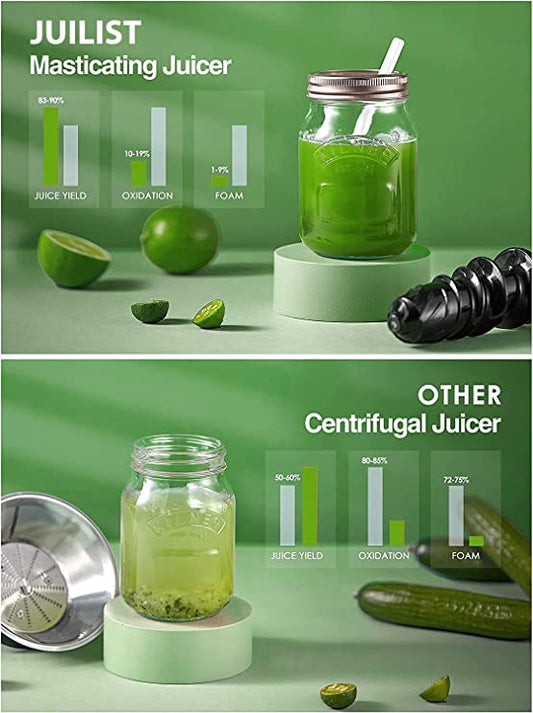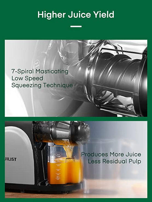 JUILIST Juicer Machine, Slow Masticating Juicer with Higher Juice Yield and Drier Pulp, Cold Press Juicer with Quiet Motor and Reverse Function, Easy to Clean, Includes Cleaning Brush (Classic Black)